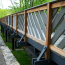 The design also called for a pedestrian/bike bridge along the Fishkill Creek that connects the parking lot to the trail. This was done via a right-of-way over the top of an existing City of Beacon sewer pipe.