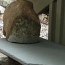 Some on-site experimentation was done with various types of stones available at the local stone yard, and a patterning emerged that soon become very alive. The thinner sides of the stones fit nicely together and made lines that followed a delightful undulating pattern that echoed the topography of the land. The affect is striking, and adds a wonderful texture to the ground plane. The texture slowly transitions to rounder stones as it meets a water feature above built in a previous design phase.